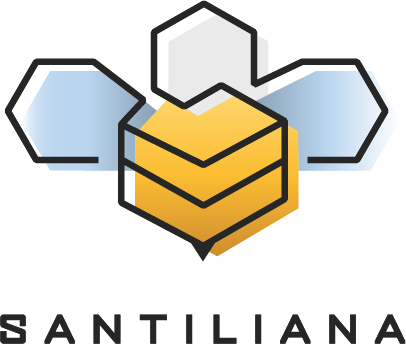 Abstract bee logo with geometric shapes and the word 'Santiliana' underneath.